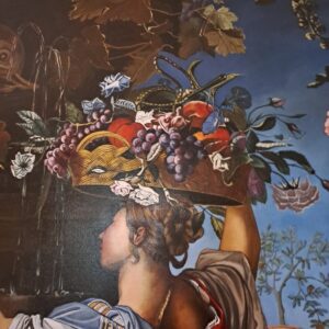 Nel riprendere l’opera mi sono piacevolmente concentrata sui particolari, in special modo quelli della frutta, i semi del melone e dell’anguria, le increspature delle bucce, gli acini dei diversi grappoli dell’uva, i fichi, il melograno con i chicchi intorno al frutto e tutti gli altri.